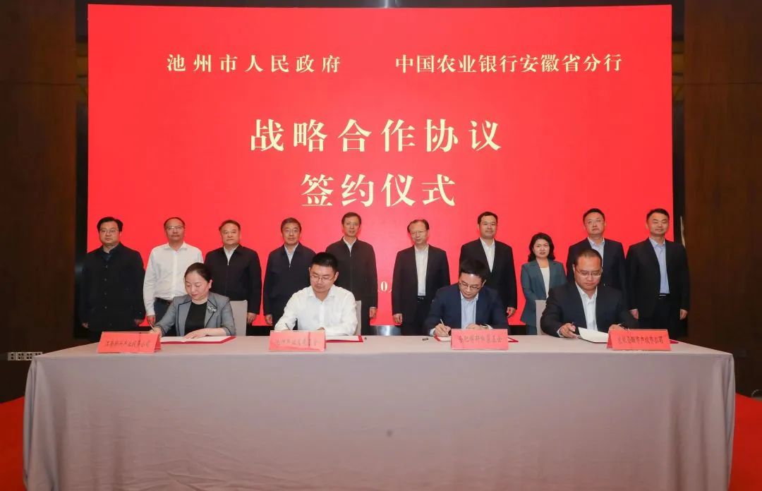 10月12日下午,池州市政府與中國農業(yè)銀行安徽省分行舉行戰(zhàn)略合作協(xié)議簽約儀式。簽約儀式上,池州市政府與中國農業(yè)銀行安徽省分行簽訂《戰(zhàn)略合作協(xié)議》;集團旗下產業(yè)發(fā)展基金有限公司、農銀金融資產投資有限公司、合肥博軒私募基金管理有限公司、安徽江南新興產業(yè)投資有限公司共同簽訂《農銀國軒新材料基金合作框架協(xié)議》。