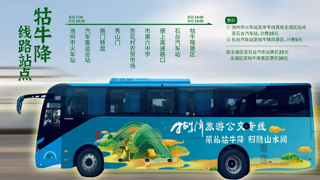 11月1日,池州主城區(qū)環(huán)城旅游公交線路和池州高鐵站至牯牛降景區(qū)旅游直通專線正式開通。環(huán)城公交線路全長約35公里,配備4臺新能源純電動公交車,采取環(huán)線運(yùn)營模式,途徑杏花村、平天湖、齊山、百牙塔、天堂湖公園等特色景區(qū)景點(diǎn)?;疖囌局陵襞=稻皡^(qū)旅游直通專線全長100公里,沿線設(shè)置9個??奎c(diǎn),采用循環(huán)發(fā)車模式,旅客可直接“打卡”牯牛降景區(qū),暢游石臺享受美好“硒”生活。