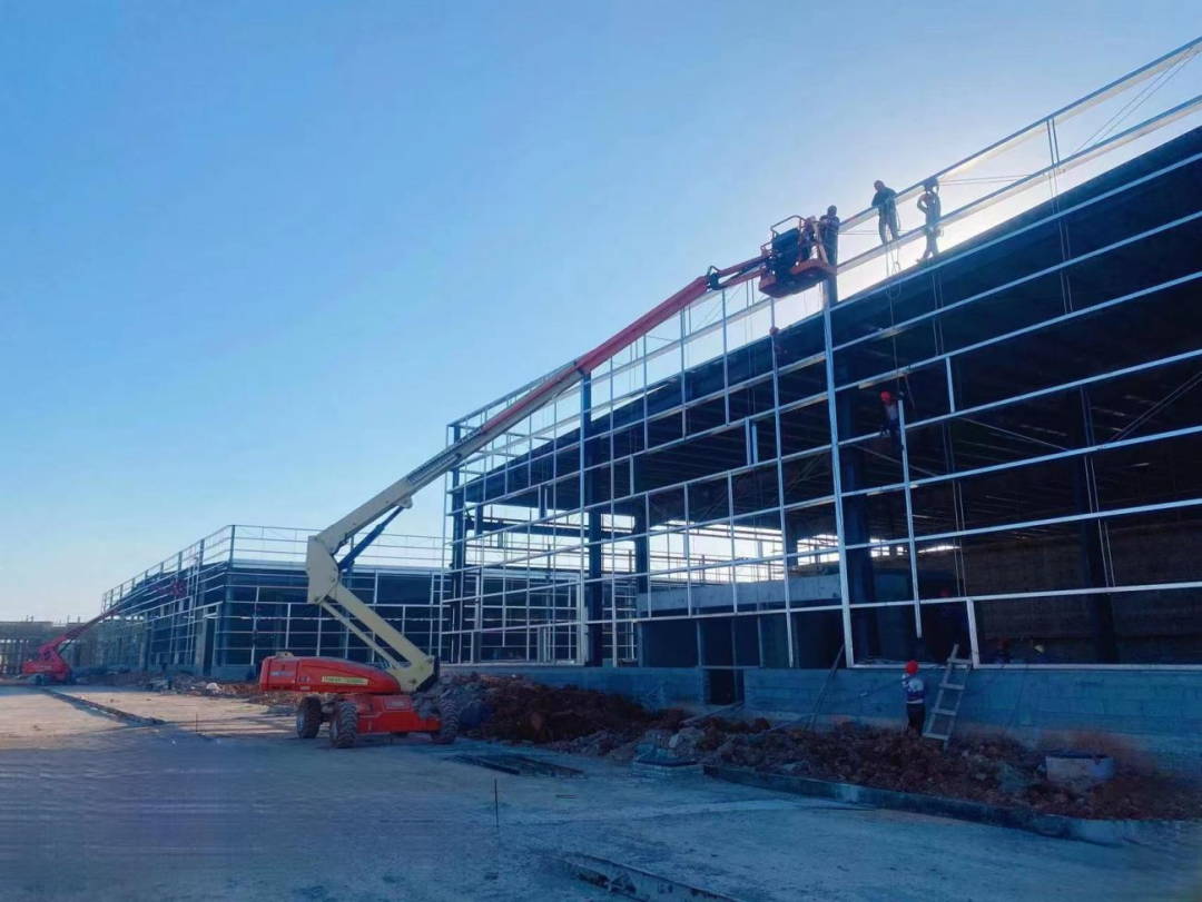 綜合動力站與綜合倉庫第一層瓦、地面機電預(yù)埋和二次構(gòu)造柱已結(jié)束,正在進(jìn)行墻面甩漿施工,硅烷站、氫氣站、笑氣氨氣站屋面第一層瓦結(jié)束,CDS站、空壓站砌筑完成,化學(xué)品庫砌筑完成60%,危廢庫正在地基基礎(chǔ)回土,附屬工程已完成60%。