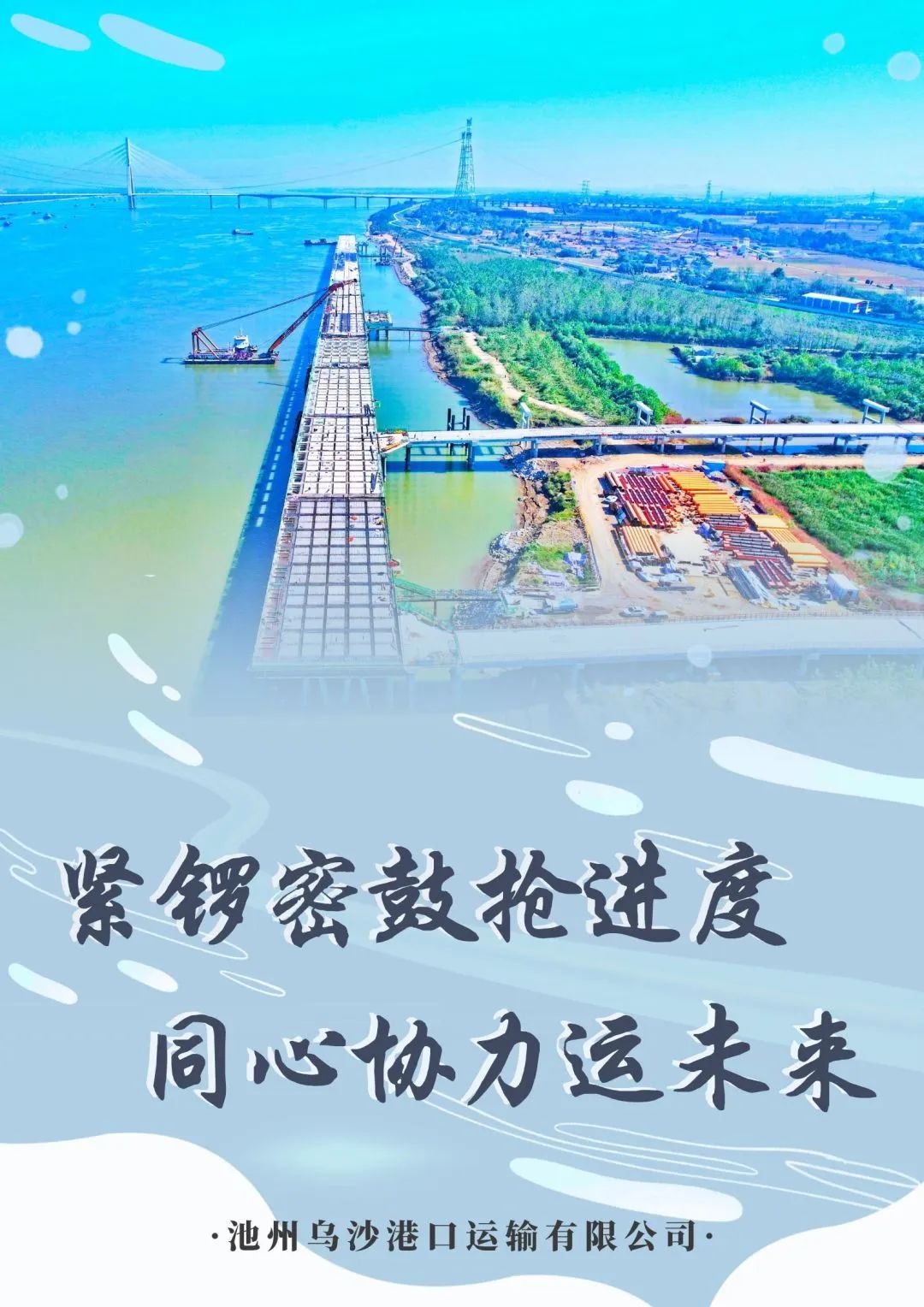 池州港烏沙港區(qū)公用碼頭項目系市投控集團(tuán)重點(diǎn)投資項目,也是我市重大公用港口基礎(chǔ)設(shè)施建設(shè)項目,現(xiàn)在正處建設(shè)期。截至目前,水域部分(碼頭工程、引橋工程和防洪影響處理工程)已完成產(chǎn)值約2.4億元,陸域部分征遷工作已完成征遷總量的95%,設(shè)備采購、融資工作正有條不紊地推進(jìn)中。下一步,池州烏沙港口運(yùn)輸有限公司將錨定目標(biāo),緊扣節(jié)點(diǎn),高質(zhì)高效如期完成烏沙港區(qū)公用碼頭項目建設(shè),為2024年預(yù)投產(chǎn)打下堅實(shí)基礎(chǔ)。