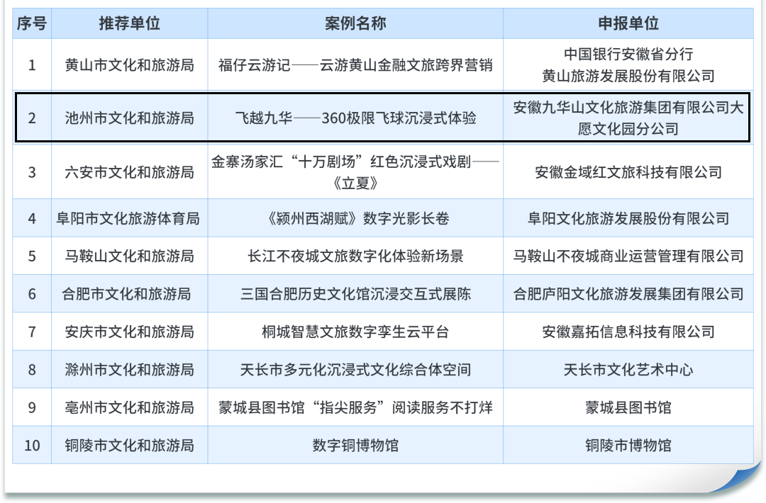 12月26日,安徽省文化和旅游廳公布2023年數(shù)字文旅創(chuàng)新實(shí)踐十佳案例名單,集團(tuán)所屬大愿文化園分公司申報(bào)的項(xiàng)目“飛越九華——360極限飛球沉浸式體驗(yàn)”榜上有名?。。?/p>