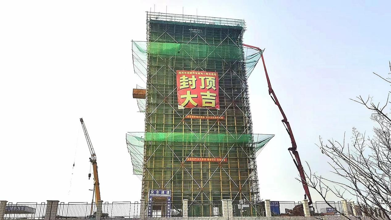 2024年1月3日,池州市消防訓練基地項目(二期)十層訓練塔順利封頂,標志著訓練塔正式進入二次結構、機電安裝及裝飾裝修施工階段。