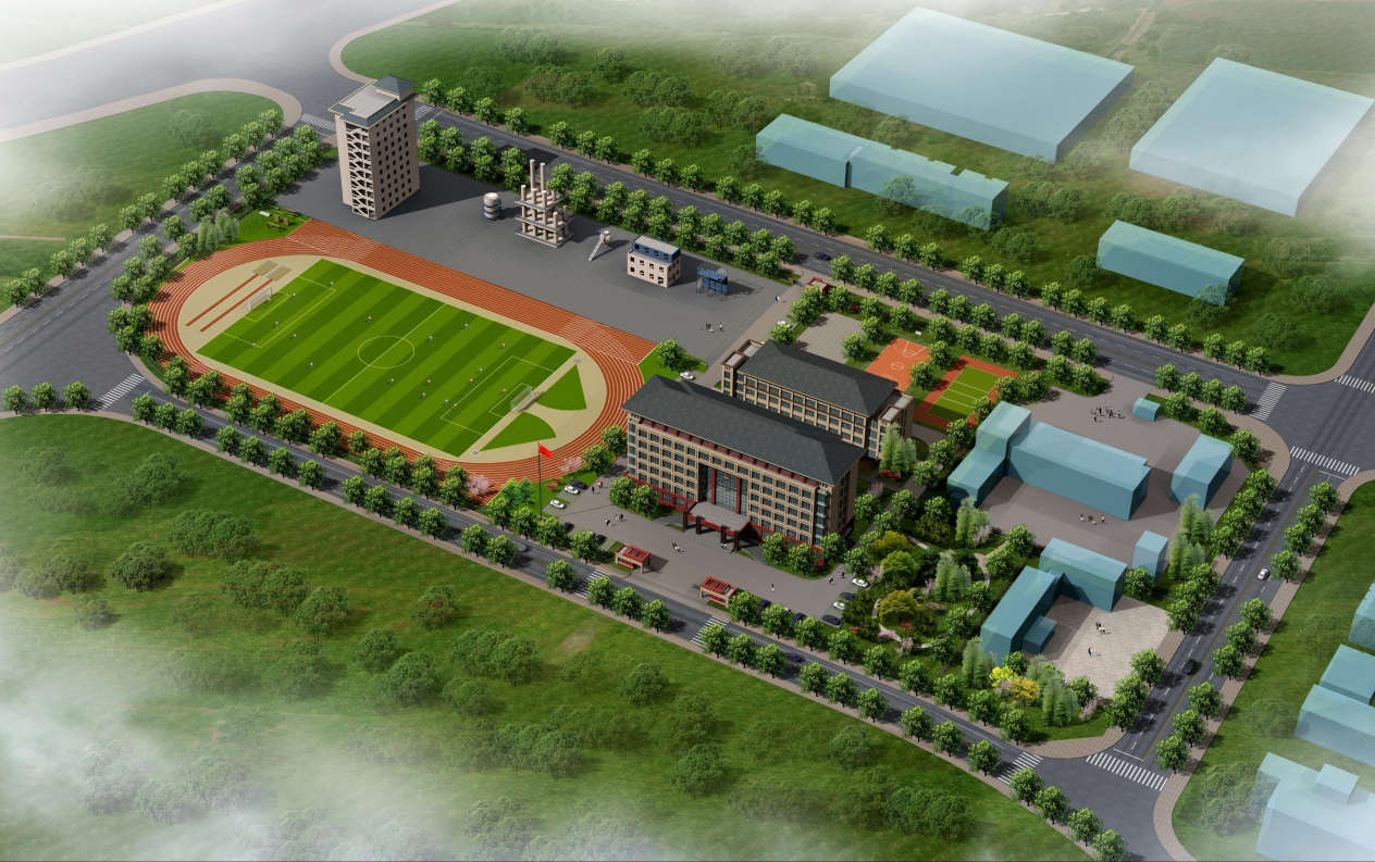 ▲池州市消防訓練基地項目規(guī)劃設計鳥瞰圖