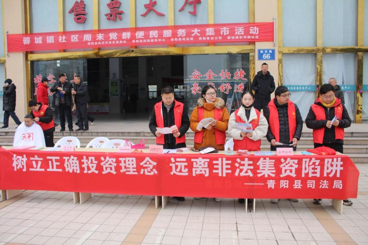臨近年底,返鄉(xiāng)人員逐漸增多,為幫助群眾及返鄉(xiāng)人員擦亮眼睛,精準識別各類投資陷阱,1月26日池州交運集團青陽客運公司、青陽縣司法局聯(lián)合在站前廣場上開展預(yù)防非法集資法治宣傳活動。