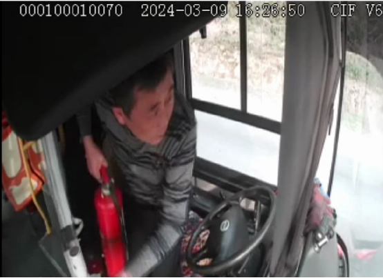 他立即將車輛安全??吭诼愤叄杆俳忾_安全帶,提起身邊的滅火器奔向著火車輛。利用日常掌握的消防滅火知識(shí),準(zhǔn)確找到起火位置,對(duì)準(zhǔn)火焰根部進(jìn)行噴射,火勢(shì)很快得到了控制。為防止火勢(shì)復(fù)燃,他又即刻返回車上,拿起水桶對(duì)準(zhǔn)車輛著火點(diǎn)進(jìn)行二次覆滅。在確保險(xiǎn)情徹底消除后,他才放心返回車上繼續(xù)執(zhí)行營(yíng)運(yùn)任務(wù)。整個(gè)救援過程,短短幾分鐘,規(guī)范、準(zhǔn)確、快速、高效,及時(shí)消除了火災(zāi)事故。