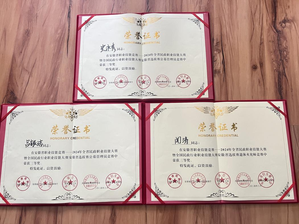 近日,在六安市舉辦的2024年安徽省民政行業(yè)職業(yè)技能競賽圓滿落幕。本次競賽共分公墓管理員和遺體火化師2個賽項,池州生態(tài)人紀(jì)念園運營有限公司參賽隊參賽選手史永秀、呂銀潔榮獲公墓管理員賽項個人“三等獎”,聞濤獲遺體火化師賽項個人“三等獎”,其中,遺體火化師賽項是我市首次獲獎。